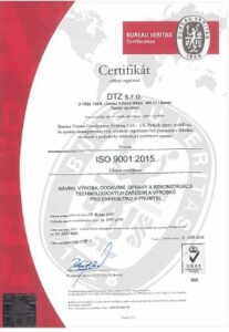 1) Certifikát systému managementu jakosti podle ISO 9001:2015 v oboru návrh, výroba, dodávání, opravy a rekonstrukce technologických zařízení pro energetiku a průmysl.