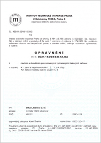 1) Oprávnění ITI k výrobě, montážím, rekonstrukcím a opravám vyhrazených tlakových zařízení v rozsahu K1: parní a kapalinové kotle 1., 2., 3. a 4. třídy