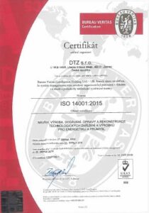 2) Certifikát systému environmentálního managementu podle ISO 14001:2015 v oboru návrh, výroba, dodávání, opravy a rekonstrukce technologických zařízení pro energetiku a průmysl.