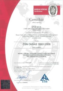 3) Certifikát systému managementu bezpečnosti a ochrany zdraví při práci podle ČSN ISO 45001:2018 v oboru návrh, výroba, dodávání, opravy a rekonstrukce technologických zařízení pro energetiku a průmysl.