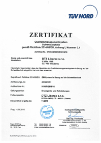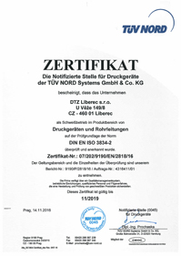 3) Certifikát systému managementu jakosti při svařování podle DIN EN ISO 3834-2 pro tlaková zařízení a potrubí